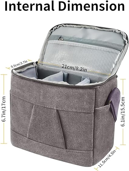 - Package Includes Canvas camera bag x1, Rain cover x1.(Camera, lens and other accessories are not included.)